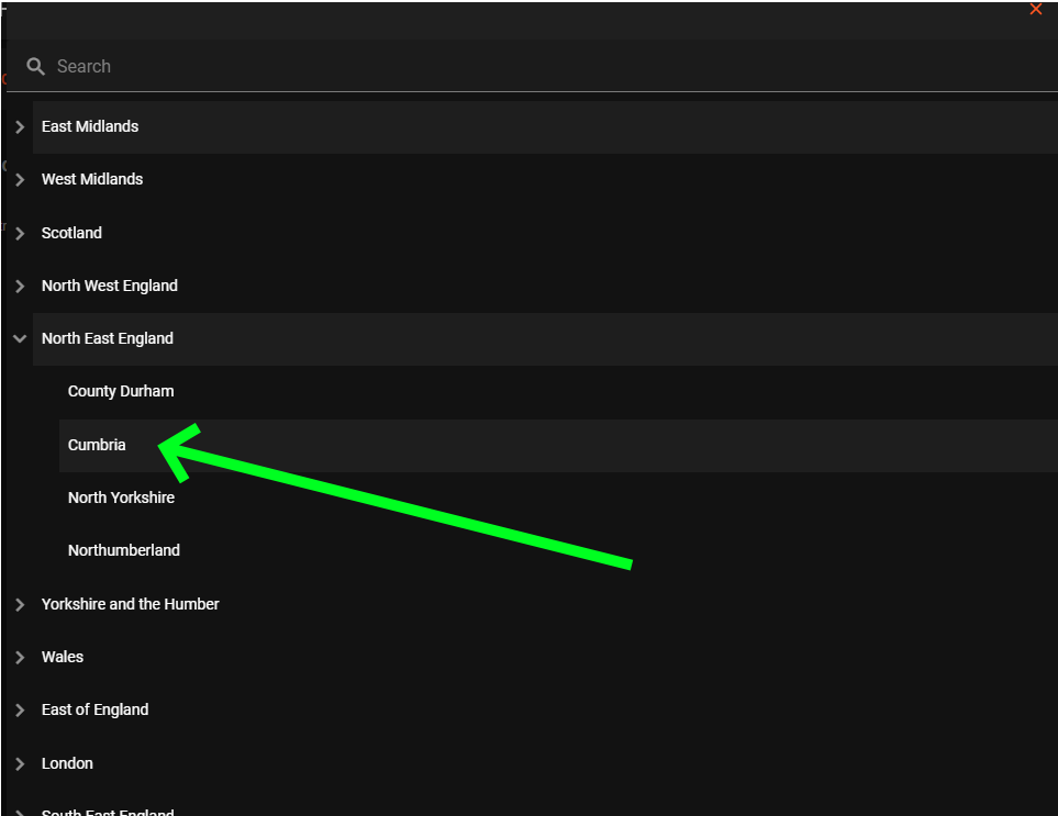 Firstly, click on a Region you would like to locate fisheries at, then click on a County.
